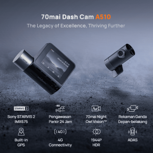 Dash Cam 70mai Pro Plus A510 4K DVR GPS ADAS Set (Depan+Belakang)