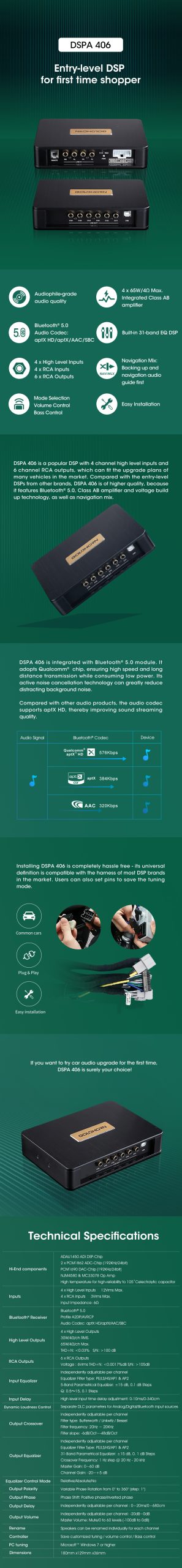 GOLDHORN DSPA 406 DSP AmplifierRp4.400.000 Kuantitas GOLDHORN DSPA 406 DSP Amplifier Tambah ke keranjang Beli via WhatsApp Jasa instalasi mulai: Rp500.000 Deskripsi Deskripsi DSPA 406 Specsheet 4 x 65W/4Ω Max. integrated Class AB amplifier Voltage build up technology 4 x High Level Inputs 4 x RCA Inputs 6 x RCA Outputs 4 x High Level Outputs Bluetooth® 5.0 Audio Codec: aptX HD/aptX /AAC/SBC Produk Terkait Power Amplifier 4CH ORCA Booster SB 100.4 Rp2.500.000 DSP Processor Amplifier 12CH 12825 Dominations Corpus Callosum Rp9.933.000 DSP Processor Amplifier Dominations Nucleus Accumbens 16CH Rp13.880.000 DSP AMPLIFIER PLUG & PLAY ANDROID RECEIVER ORCA BOOSTER MINI SB 55.4 Rp499.000