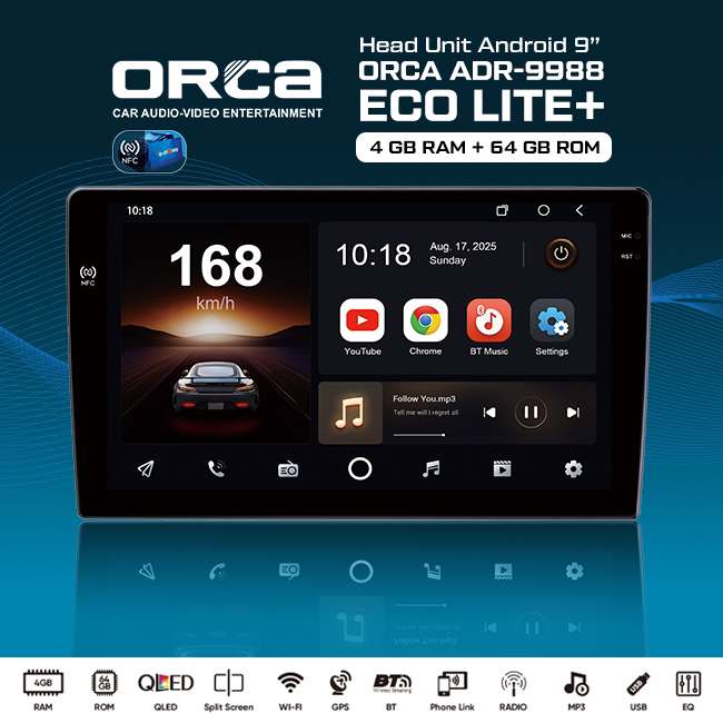 Head Unit Android Orca Eco Lite Plus NFC Series ADR-9988 4/64GB