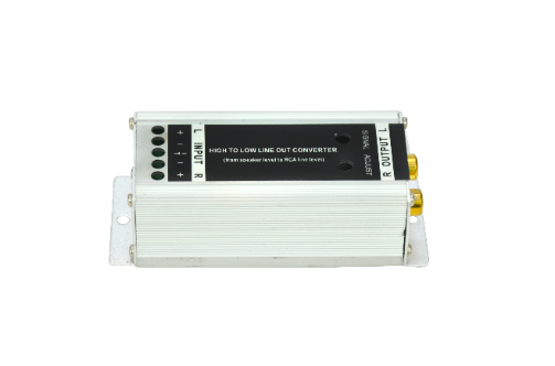 Hi to Low by Pitch & Timbre Change the OEM car head unit speaker output path to the RCA Out path for input to the power amplifier
